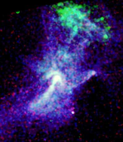 в час. Чуть выше пульсара можно видеть рентгеновское излучение