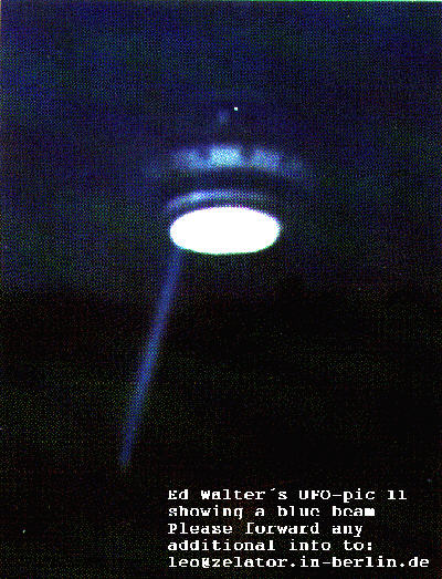 На фотографии действительно изображен НЛО в момент сбора информации о психической обстановке в данном месте Матери Земли (слева синий луч идет вниз).