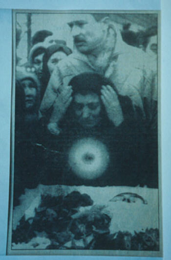 из дома, над ней наклонилась ее убитая горем мать. Я снял в