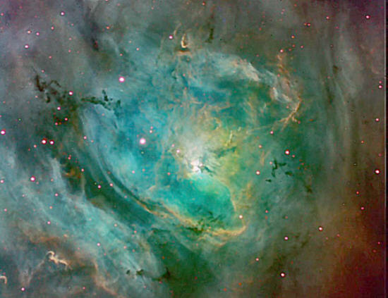 В величественной туманности Лагуна или NGC 6523 много молодых звезд и горячего газа.