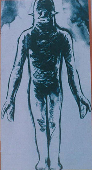к ним приблизился НЛО и из него вышли 3 необычных существа.
