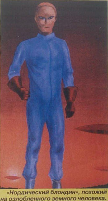 Журнал НЛО № 45 за 6 ноября 2000 года. Ст 13. Приведенный рисунок инопланетянина это просто земное творчество. Инопланетники выглядят иначе.