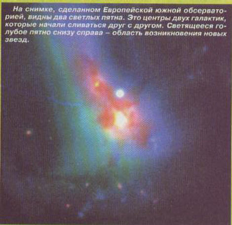 Журнал НЛО № 28 за 10 июля 2000 года. С.15. Вверху на снимке надпись: "На снимке,сделнном Европейской южной обсерваторией, видны два светлых пятна...."