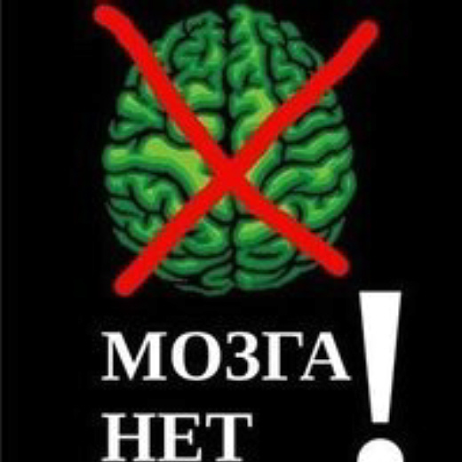 Рисунок- кодировка, направлен на Душу, вызывает остановку работы мозга. Зелёный цвет- для желания приянть кодировку. Усиливают кодировку и слова «Мозга нет». Восклицательный знак концентрирует внимание на кодировке.