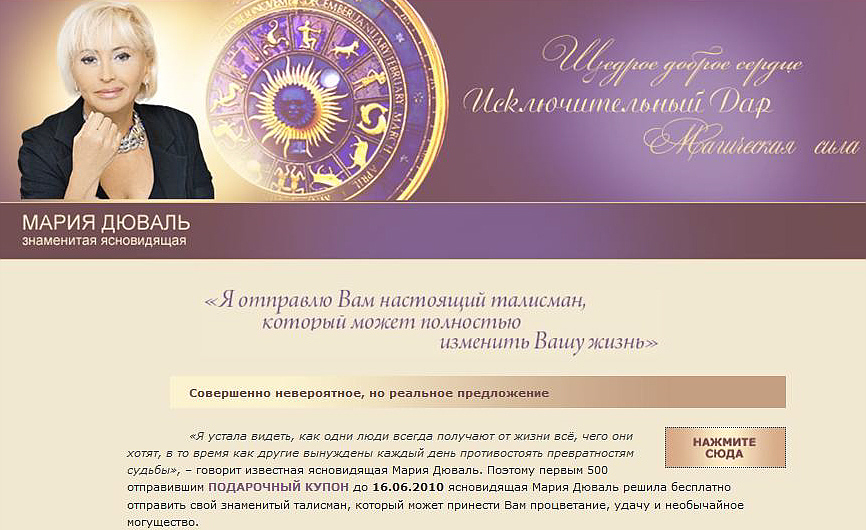Рисунок- кодировка, направлен на Душу, на принятие Душой негатива. Мария Дюваль – контактантка негативного плана, проводник негативных энергий, усиливает кодировку. 12 знаков зодиака в круге – воздействие негативом на Душу. Текст: 3 строчки, 3 строчки и 6 строк – кодировка на принятие негатива.