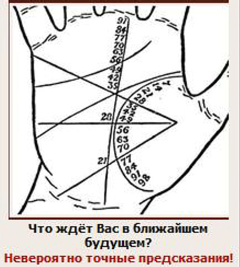 Рисунок- кодировка, направлен на Душу, на принятие Душой зла. Острый угол разделён на 2 части линией- всего линий 3 – кодировка на принятие зла. Линии на ладони – зло направленное в Душу. Остальное усиливает кодировку.