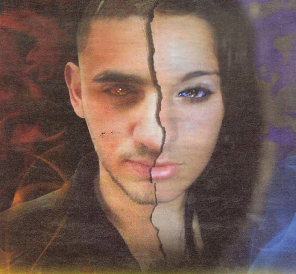 Рисунок- кодировка, направлен на Душу, вызывает ухожат. Деление человека на две части – кодировка на ухожат (уход Души из физического тела – смерть). Тёмный фон рисунка усиливает кодировку.
