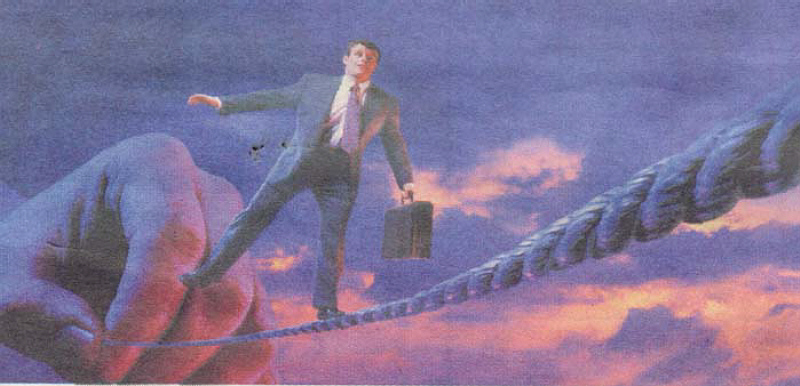 Рисунок- кодировка, направлен на Душу, на принятие Душой негатива. Пять пальцев руки – воздействие на Душу. Человек стоит левой ногой на канате, в левой руке ноша (человек принял негатив). Красный фон усиливает кодировку.