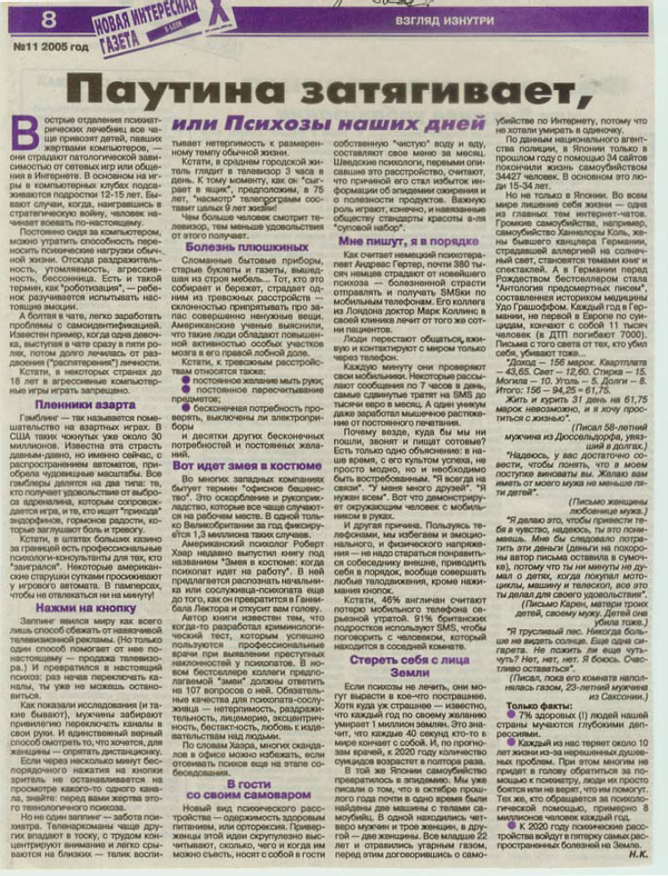 Раздел " Пленники азарта" - имеется кодировка на уход Души из физического тела.