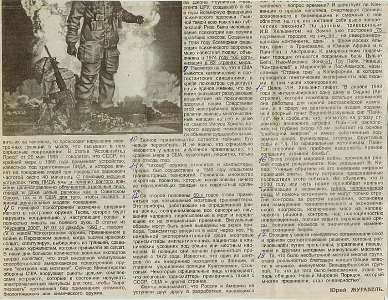 4. Кодировка направлена на Душу, снизить жизненный тонус, вызвать апатию. "Журнал 2000", № 97 за декабрь 1993 года. 2000 - остановить жизненный тонус, декабрь - 12 месяц - негатив. 1993 = 21 = 3 - негатив. Присутствуют и смысловые кодировки.