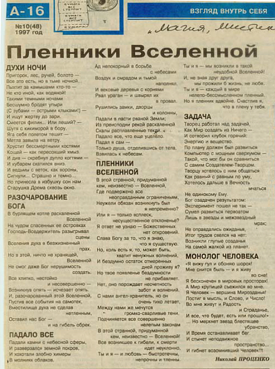 4. ПЛЕННИКИ ВСЕЛЕННОЙ - стихотворение проникнуто пессимистическим настроением. Призывает смиренно жить не проявляя воли человека к каим -либо свершениям, пассивно пребывать на Матери Земле. Кодировка направлена на деградацию личности.