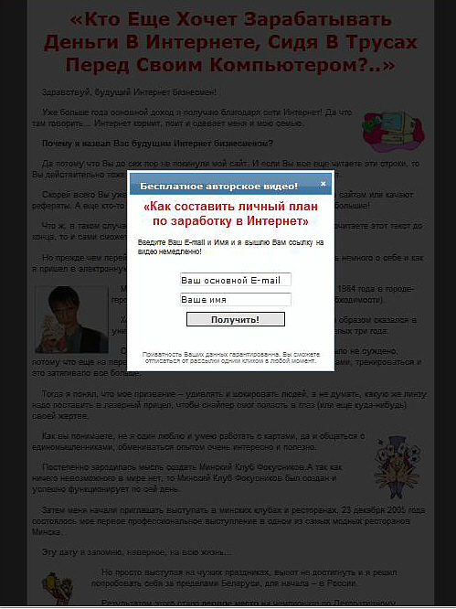 На странице кодировка, направленная на Душу, на желание принять негатив. Кодировка содержится в тексте: "Как составить личный план по заработку в Интернет". Контактант негативного плана усиливает кодировку.