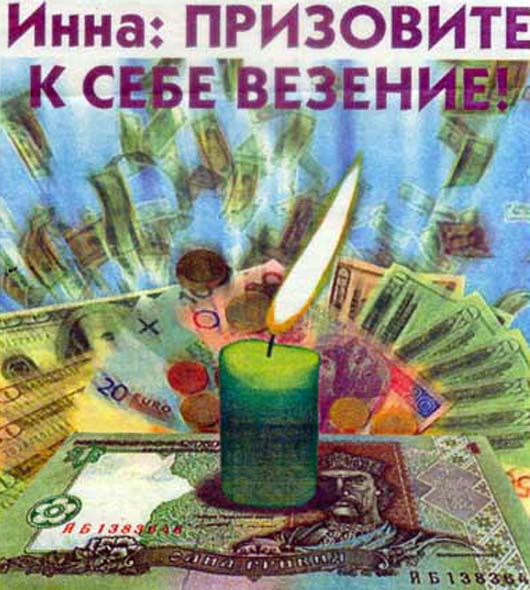 Рисунок- кодировка, направлен на Душу, на принятие энергий негатива и на ухожат. На гривне слева кружок с 5 элементами- воздействие на Душу. Возле круга номер 1383648, в сумме 33 - энергии негатива в Душу. Красный цвет усиливает кодировку. Следующий номер 138364, в сумме 25 - подготовка Души к ухожату (цифры чёрного цвета). На купюрах цифра 20 - кодировка на ухожат. Свеча концентрирует внимание на кодировках. Зелёный цвет вызывает желание принять кодировку.