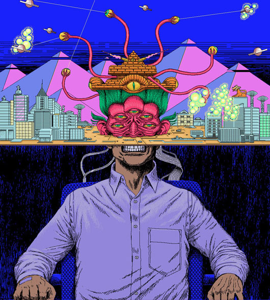 Рисунок- кодировка, направлен на Душу, на ухожат. Рисунок состоит из 2-х частей - кодировка на ухожат. Здания - воздействие на Дом Души. Разум Души находится в Доме Души и сигнал о желании покинуть физическое тело идёт из Дома Души. Рисунок симметричен - также кодировка на ухожат. 5 глаз - воздействие на Душу негативом (6 ламп).