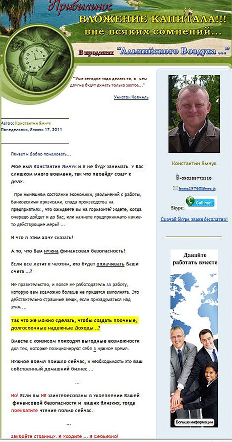 На странице кодировка, направленная на Душу, на ухожат. На нижнем фото 5 рук – воздействие на Душу. Часы (круглая форма) - воздействие на Душу. 2 строчки текста жёлтого цвета – кодировка на ухожат. Облака – усиление кодировки.