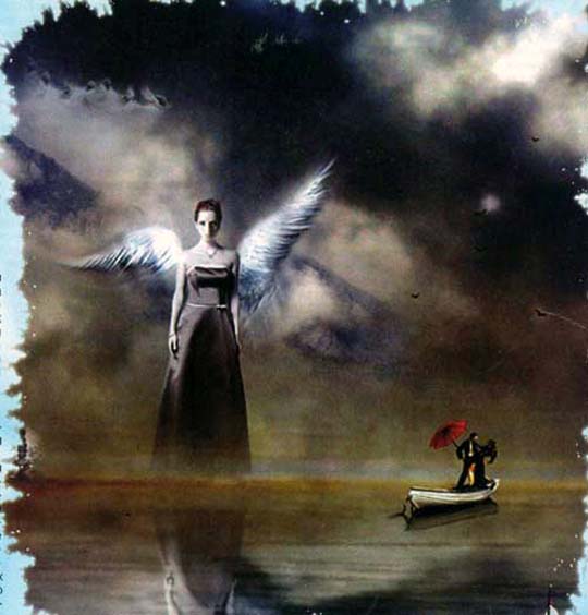 Рисунок является проводником негатива. Во время концентрации внимания на контактантке происходит раскрытие чакры Души и наполнение её негативными энергиями. Лодка с двумя людьми - кодировка на уход Души из физического тела от принятия негативных энергий (красный зонт). Справа от контактантки женщина, лежащая в гробу, - конечный результат воздействия негатива.