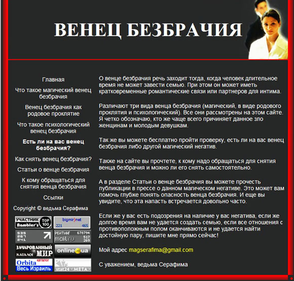 На странице кодировка, направленная на Душу. Предложение: Венец безбрачия (14 букв) - кодировка на Душу. 2 лица вверху справа – кодировка на ухожат. Страница разделена на 2 части красной линией – усиление кодировки. Текст концентрирует внимание на кодировке.