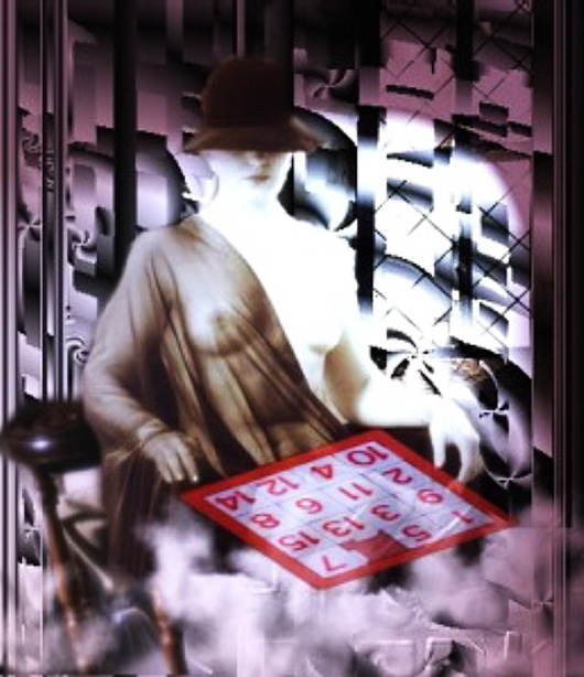 Рисунок-кодировка, направлен на Душу, на ухожат. Цифры: 1 + 9 + 2 + 10 = 22 – цифровая кодировка на ухожат. Цифры: 5 + 3 + 11 + 4 – 23 – воздействие на Душу. Отсутствие одной цифры на таблице концентрирует внимание на кодировке. Рамка усиливает кодировку. Одежда также для усиления кодировки.