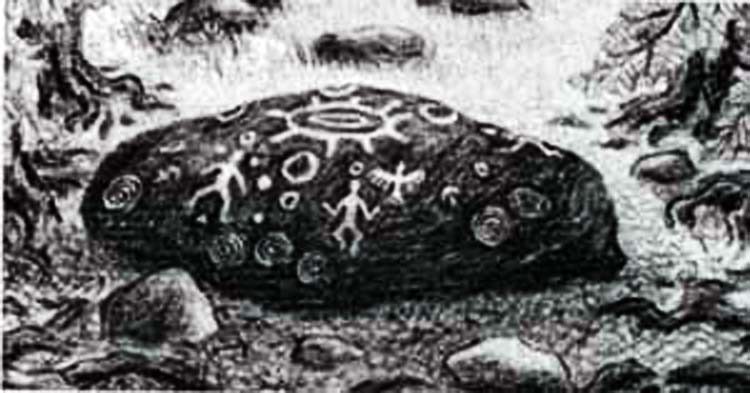 Рисунок-кодировка, направлен на Душу, на ухожат. Весь рисунок напоминает могилу. В центре круг – кодировка на Душу. 2 человечка – кодировка на ухожат.