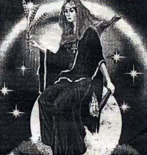 Рисунок-кодировка, направлен на Душу, на ухожат. Круг – кодировка на Душу. Причёска и одежда содержат кодировку на ухожат. Верхняя часть одежды и нижняя часть одежды состоят из 2-х частей. Волосы также разделены на 2 части. Колоски концентрируют внимание на кодировке. Тёмный фон и звёзды усиливают кодировку.