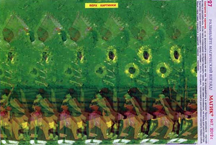 Рисунок- кодировка, направлен на Душу, на принятие Душой негативных энергий Поля 6 Зет. Вверху 6 одинаковых рисунков – кодировка. Во втором ряду также 6 одинаковых рисунков – кодировка. Остальное концентрирует внимание на кодировке. Зелёный фон вызывает желание принять кодировку.