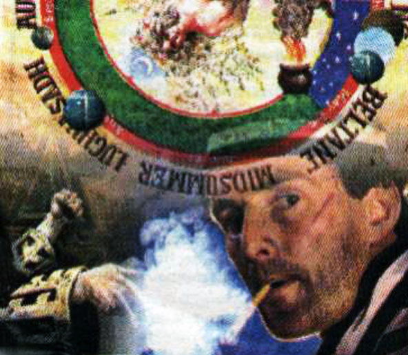 Рисунок-кодировка, направленный на нездоровый образ жизни: вызвать зависимость от табака, от наркотических веществ, окунуться в развратную жизнь. Влияние рисунок оказывает на Душу (на красной окружности 5 мячиков). Слева видим руки контактанта негативного плана, выполняющего кодировки (возле сигаретного дыма 3 пальца – зло энергий идущих из правой руки контактанта, пальцы левой руки сжаты в кулак – 5 пальцев – сосредоточить внимание на Душе).