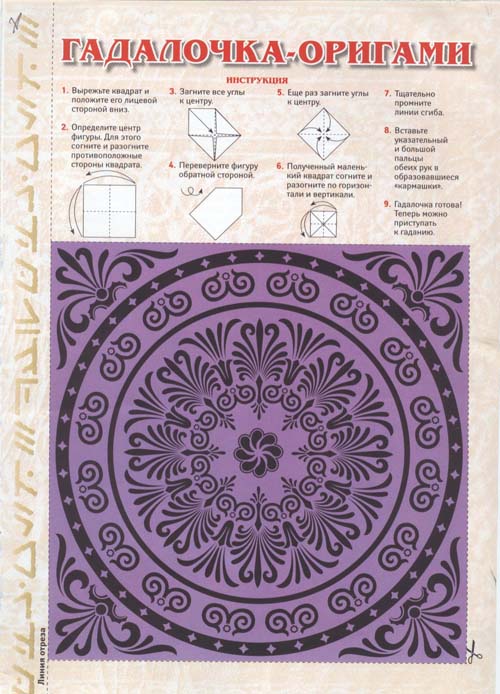 Рисунок- кодировка, направлен на Душу, на ухожат. Рисунок симметричен – кодировка на ухожат. Линия отреза – 11 букв, двое ножниц – усиление кодировки. В инструкции 5 рисунков – кодировка на Душу. Два 4-угольника со стрелками против часовой стрелки (по 2 стрелки) - усиление кодировки. За линией отреза 20 знаков – усиление кодировки.