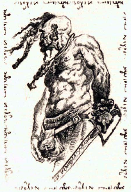 Этот рисунок содержит кодировку, направленную на ухожат, вызванный повешением. На шее удавка. Возле теменной чакры - 6 струй негативных энергий Поля 6 Зет (энергии чёрного цвета), вытесняющих из физического тела, Душу. В левой руке изображена сабля, символизирующая смерть. Рисунок находится в рамке, что усиливает кодировку на ухожат.