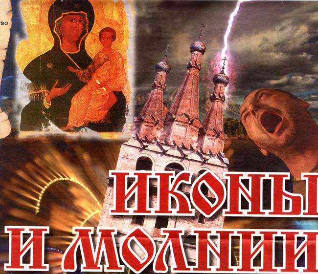 Рисунок содержит кодировку, направленную на Душу, вызвать отрицание Бога, неверие в Него (икона тёмно-коричневого цвета), принять в Душу зло негативных энергий (молния энергий возле 3-х куполов коричневого цвета). В рисунке содержится также кодировка, направленная на заболевание Души, после заполнения её негативными энергиями (человек кричит от Душевной боли. Изображён он коричневым цветом – заполнение негативными энергиями). В названии статьи слово «ИКОНЫ» - 5 букв – воздействие на Душу. Слово «МОЛНИИ» - 6 букв – воздействие негативом. Слова эти служат для закрепления кодировок.