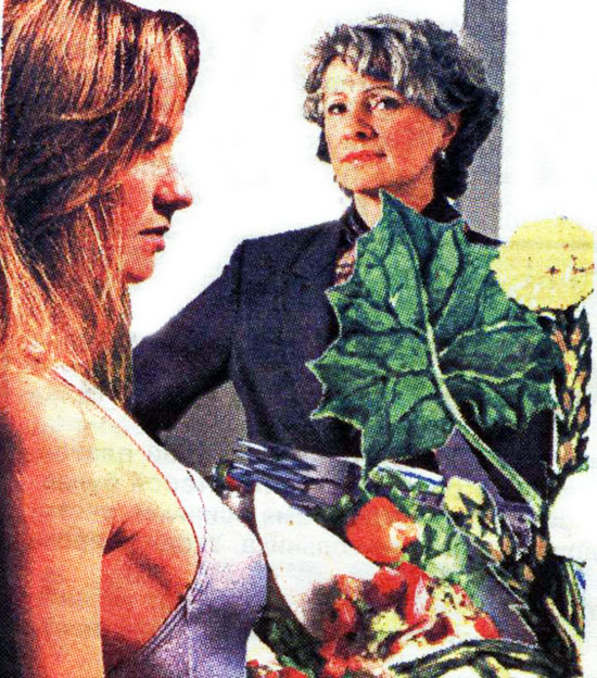 Содержание рисунка сводится к тому, чтобы показать разницу в возрасте – молодость и возраст средних лет. Вызвать у женщин немолодого возраста тревогу, тоску по ушедшей молодости, депрессию. Рисунок кодировочного плана. Зелёный лист символизирует начало жизни, молодость. На рисунке он изображён обратной стороной. Относительно женского возраста это означает, молодость прошла, наступает старость.