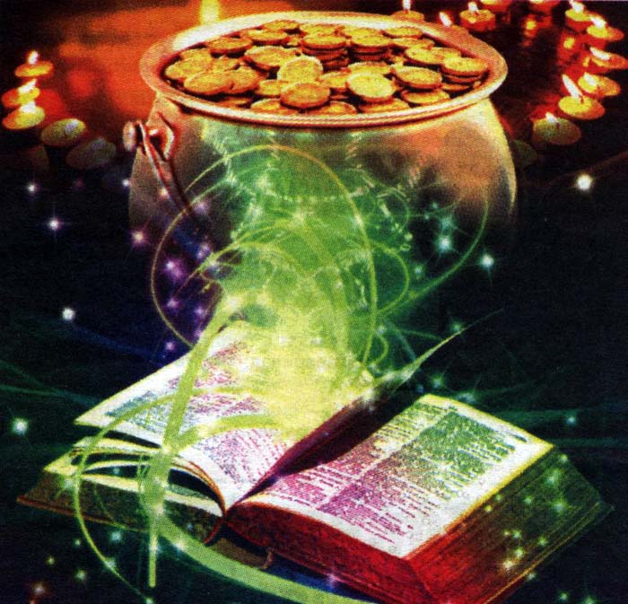 Чёрный звёздный фон и деньги – усиление кодировки. Зелёный цвет вызывает желание принять кодировку.