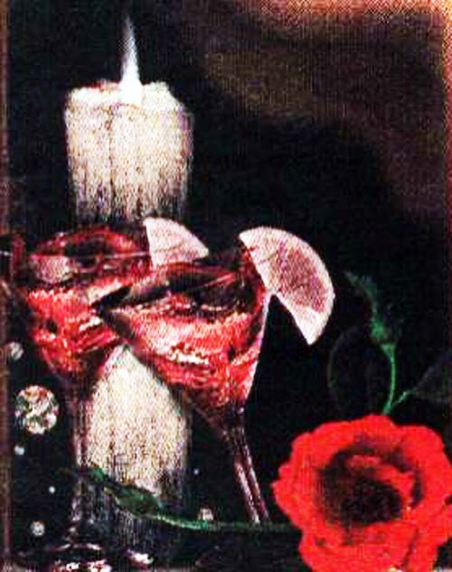 Рисунок – кодировка, направлен на Душу, вызвать желание Души служить негативу (красный цветок символизирует Душу заполненную негативом). Бокал – для усиления кодировки. Свеча (также как и бокал состоит из 5 букв) - для усиления кодировки. Кроме того, свеча, являясь атрибутом чёрных магов, концентрирует внимание на негативе. Тёмный фон усиливает воздействие негатива на Душу.