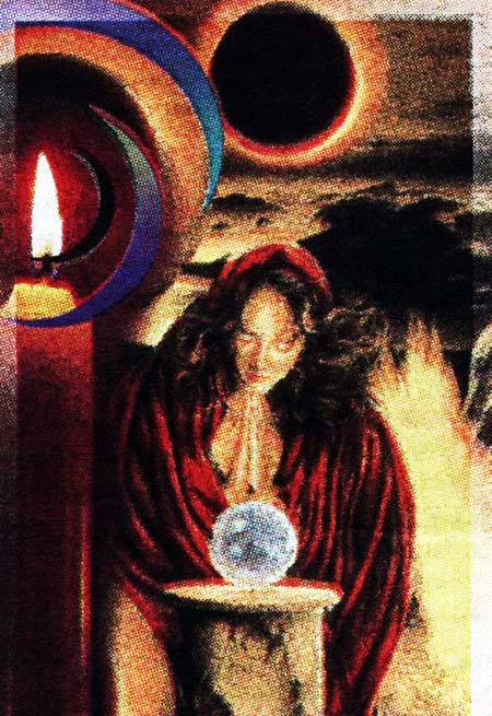 Рисунок – кодировка, направлен на Душу, на ухожат. Круг – кодировка на Душу, 2 руки над кругом – кодировка на ухожат Души. Чёрный круг вверху символизирует вход во Временной Коридор (усиление кодировки). Свеча усиливает кодировку. Контактантка негативного плана, работающая со служками Люцифера из Отсека энергий ухожата, Поле 6 Зет (усиление кодировки). 4 –е полукруга возле свечи – усиление кодировки.