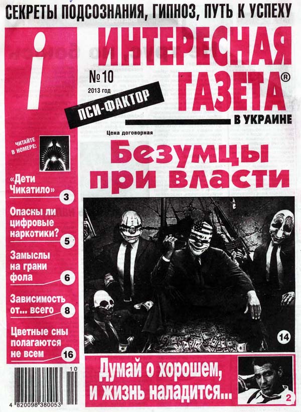 Рисунок – кодировка, направлен на Душу, на убийство, на ухожат. Убийцы в масках – кодировка на убийство, на ухожат. Цифра 14 – кодировка на Душу. 5 пальцев – кодировка на Душу. 4 пальца – усиление кодировки. 2 строчки текста вверху рисунка – кодировка на ухожат. Чёрный цвет – усиление кодировки. Деньги – вызвать желание принять кодировку.