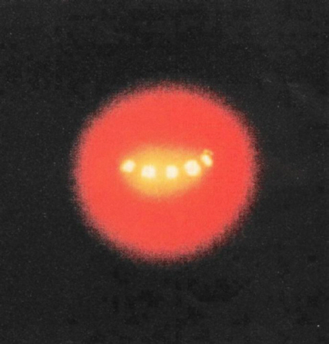 Это НЛО. Красный фон – момент сжигания газов для перехода в другой режим полёта.