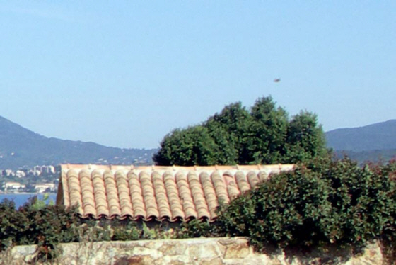 Над деревьями просматривается космический корабль с планеты Альфа Центавра.