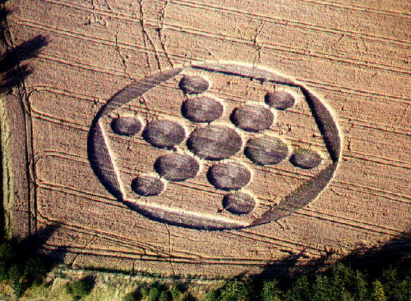 The picture was created by people. It shows one of the sections of 6 Zet Field. It affects the Soul, the desire to access to the negative. The three crossed lines that consist of 5 small circles each make 15 in total, which makes 6 (5+1), that it 6 Zet Field. The plane on which they are represented is hexagonal, which is a sign of the negative, too.