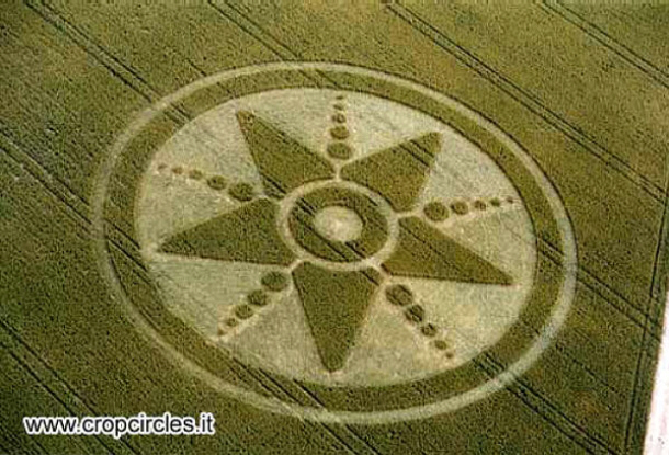 This pictogram was left by extraterrestrials. Its content: “Earthlings, clean your Souls from dirt, fill them with the energies of Father God; this will help you fight the negative that rules on Earth”. The star with five points symbolizes the Soul. The picture is divided into 10 parts along the circumference – the Soul being filled with the energies of Father God. Archintelligent God Khach.