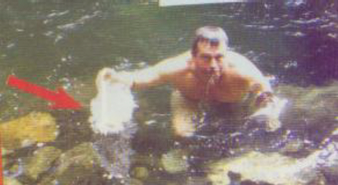 В журнале НЛО №36 за 4 сентября 2006 года в заметке Павла Карташова приводится данная фотография. Снимок этот сделали члены группы российских исследователей, занимающихся изучением биологических энергий естественного и искусственного происхождения, во время очередной экспедиции на Северный Кавказ, в весьма труднодоступном месте - верховьях горной реки. При анализе фотоснимков, сделанных во время купания в этой природной энергетической колыбели, был обнаружен этот уникальный кадр. На нём видно, что к руке участника экспедиции «прилип» энергетический сгусток.