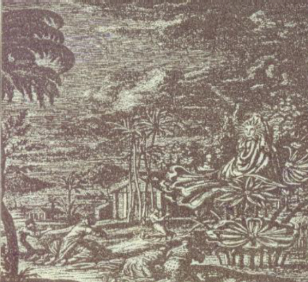 The subject represented in the picture is dedicated to one of the ancient religions that thought that the nature was divine and could appear before people as a Guardian Angel. In the picture we can see one of the deities created by the human fantasy. People pray to it asking to make their cherished wishes come true. This is the meaning of the picture. Archintelligent God Nefhchuht.