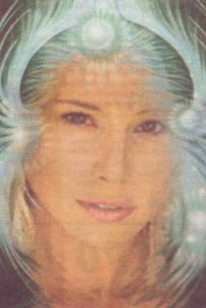 The brown is the negative. The blue symbolizes energies that bring knowledge. The picture shows the process of teaching of a negative contactee. The Cosmos still hopes to teach her. Archintelligent God Nefhchuht.
