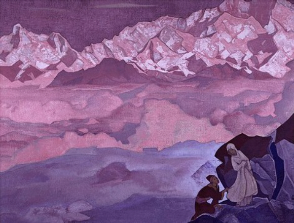 N.Rerich. The artist showed in a spectacular manner the motion of the energies of Father God that smoothly spread in space. Archintelligent God Tutan Shantaharad.