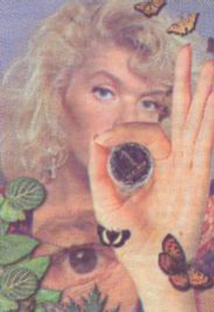 The picture shows a negative contactee that carries out encoding aimed at passion for money. On the coin there is number 1 – to make money the center of one’s life. To save money is task number one. The eye symbolizes contacts. The butterflies symbolize the lightheartedness of negative contactees.