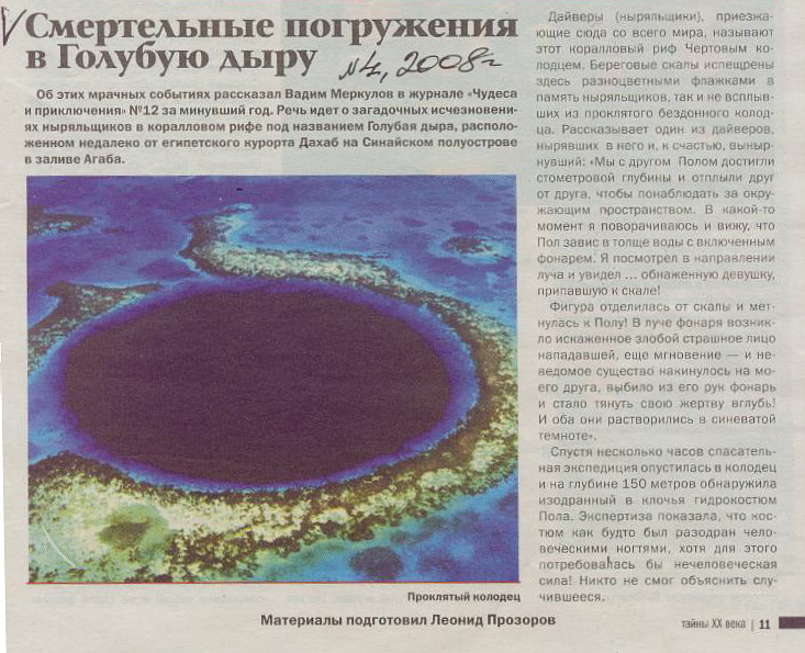 «Речь идет о загадочных исчезновениях ныряльщиков в коралловом рифе под названием Голубая дыра».
