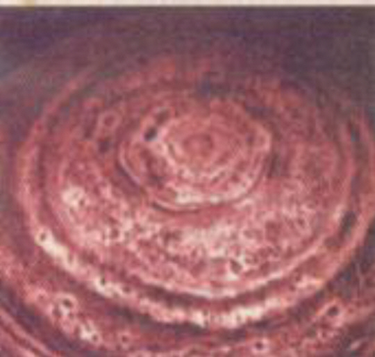 Этот рисунок прислали нам на экспертизу. Он напечатан в журнале «Тайны ХХ века» № 23 за 2007 г в заметке «На Сатурне образовался шестиугольник!» Данный рисунок является кодировкой, направленной на Душу, на принятие Душой негативных энергий Поля 6 Зет, на желание подсоединиться к Полю 6 Зет и стать зомби. В центре рисунка, в шестиграннике (один из отсеков Поля 6 Зет), изображён человек зомби с поднятыми в сторону- веерх руками. На голове у него антенна, соединяющая его с энергетическим Полем 6 Зет. Слева от человека маленький цыплёнок, вылупившийся из яйца. Этот приём использован для внсения в мозг кодировки о беспомощности, бессилии, подобии маленькому птенцу. Верхнюю часть шестигранника опоясывает животное с тремя острыми шипами, оно олицетворяет зло негатива. Человек, подсоединённый к Полю 6 Зет, находится во власти негатива, с которым справиться не в состоянии. Он пребывает в плену зла. Весь рисунок по форме напоминает Душу, имеет коричневый фон, что свидетельствует о негативном направлении рисунка.