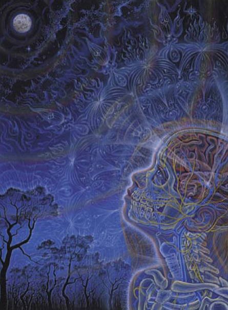 Рисунок- кодировка, направлен на ухожат (смерть). Человек-скелет обозначает мёртвого человека. Он смотрит на светлый круг, видит свою Душу, вышедшую из тела.