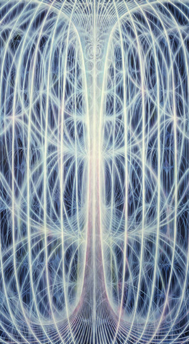 Риснок-кодировка, направлен на ухожат (смерть). Изображена в увеличенном виде теменная чакра для концентрации внимания на выходе Души. Вверху изображены два круга, что обозначает ухожат. Чакра изображена на фоне кругов, чтобы вызвать желание Души покинуть физическое тело.