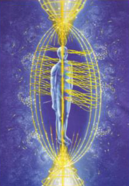 Рисунок – кодировка, направлен на разбалансирование энергококона. На рисунке показан отток энергий из чакр, вызывающий нарушение энергетики. Архиразумный Бог Нефхчухт.
