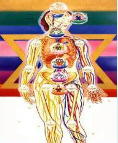 Рисунок содержит кодировку, направленную на Душу, вызвать желание Души принять негативные энергии. Изображены чакры для концентрации внимания на негативных энергиях, заполняющих чакры. Затылочная чакра обозначена коричневым цветом, т.е. заполнена негативом. Человек подключён к негативу. Все элементы рисунка для фиксации внимания на кодировке.