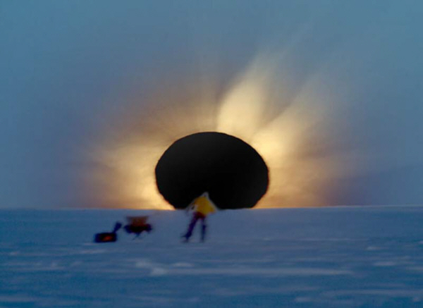Рисунок- кодировка, направлен на Душу, на желание Души принять негатив. Чёрный круг – Душа, заполненная негативом. Круг изображён на фоне заходящего солнца- для желания принять кодировку. Остальное – для фиксации внимания на кодировке.
